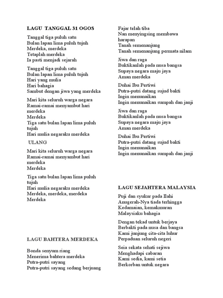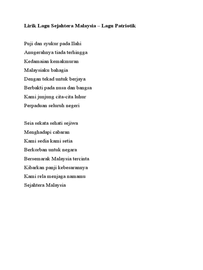 Lirik Lagu Sejahtera Malaysia Pdf